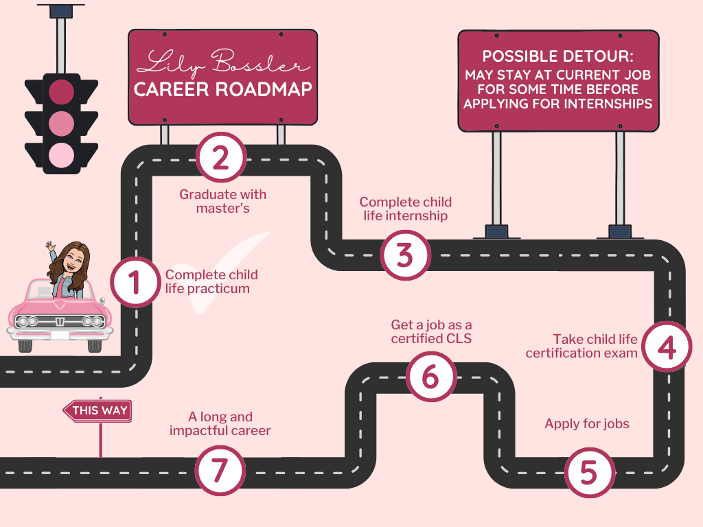 In one of my master’s classes, we had to create a roadmap of our careers. Here’s mine: